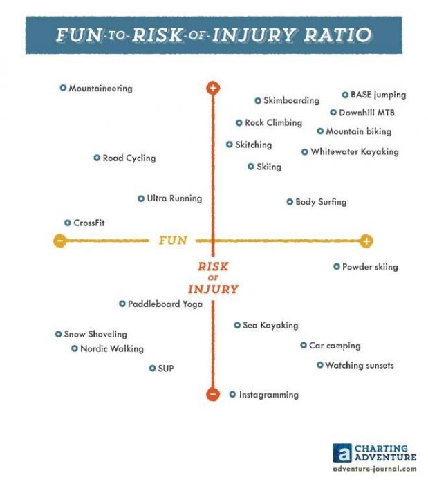Morale de cette histoire: consulter le graphique du site www.adventure-journal.com/2013/07/charting-adventure-the-fun-to-risk-of-injury-r Prix citron de l'année à ce site! Eau plaisir de retour PB Va voir ça Éric G, je crois qu'il faut que tu gardes tes kayaks aussi!!