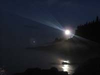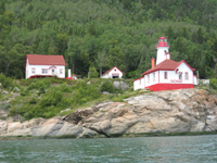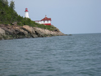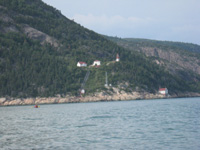 Recherche d’un campement, se rapprocher un peu plus de Saint-Siméon, nous trouvons un rocher assez intéressant non loin de Cap-au-Saumon. Un peu en amont du phare, tout mignon (069 55’ 187’’ W 47 45’ 187 N).