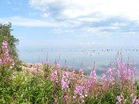 Estran de cailloux et d’algues, un calvaire pour monter les kayaks. Je prends l’option du paresseux pour une heure ou deux, prendre une bière, fumer quelques cigarettes. Une fois par demi-heure, puisque la marée monte, j’approche mon kayak un peu plus. Je suis en vacance, il n’y a pas le feu au lac…