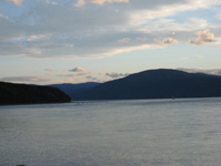 -Kayak de mer, aucun trafic qui descend le fjord. Toutefois, comme il est midi, les bateaux de croisières et les autres zodiacs reviennent de leurs excursions aux baleines. A vous…