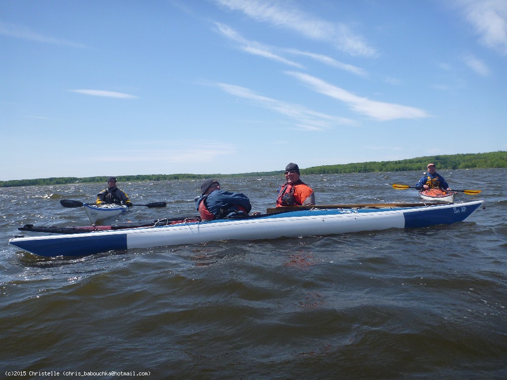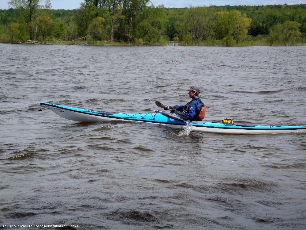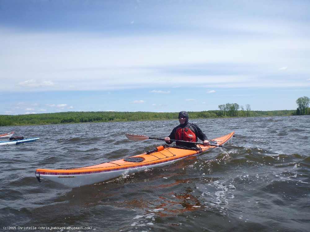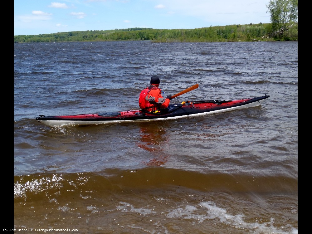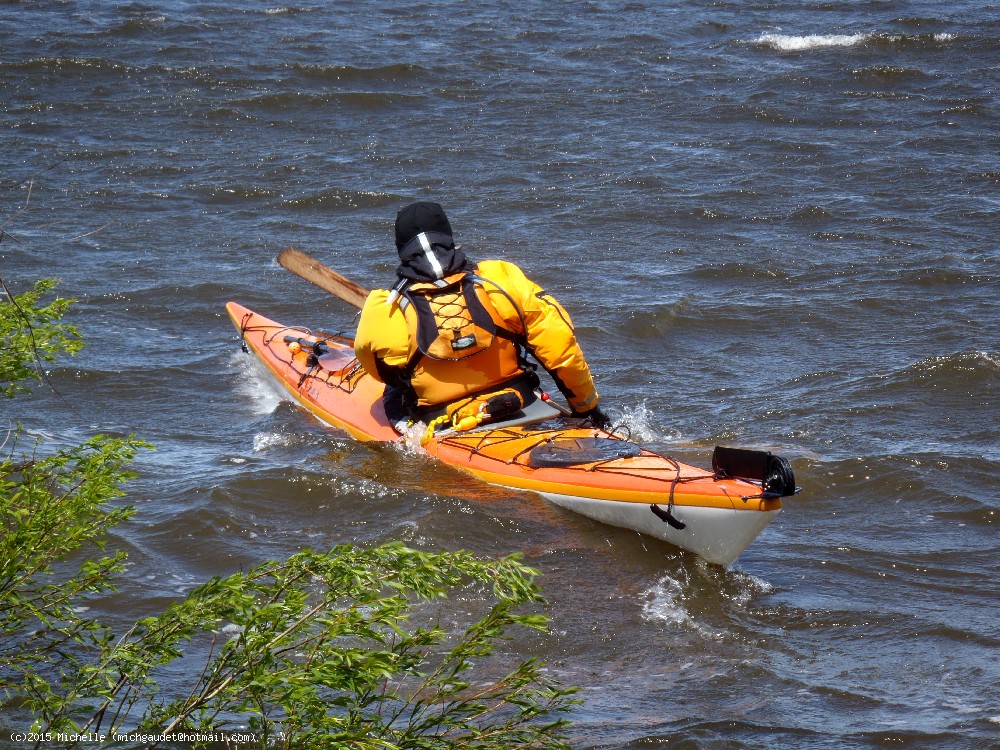 Le plaisir de voir quelqu'un qui commence, revenir d'une rando avec du vent, de l'eau qui bouge et la vague 3/4 arrière avec satisfaction de sa journée, c'est toujours le fun à voir. J'ai l'impression que le germe de la kayakerie est semé, pour l'aider à prendre, donne lui de l'eau en masse!