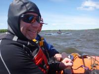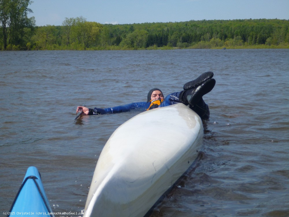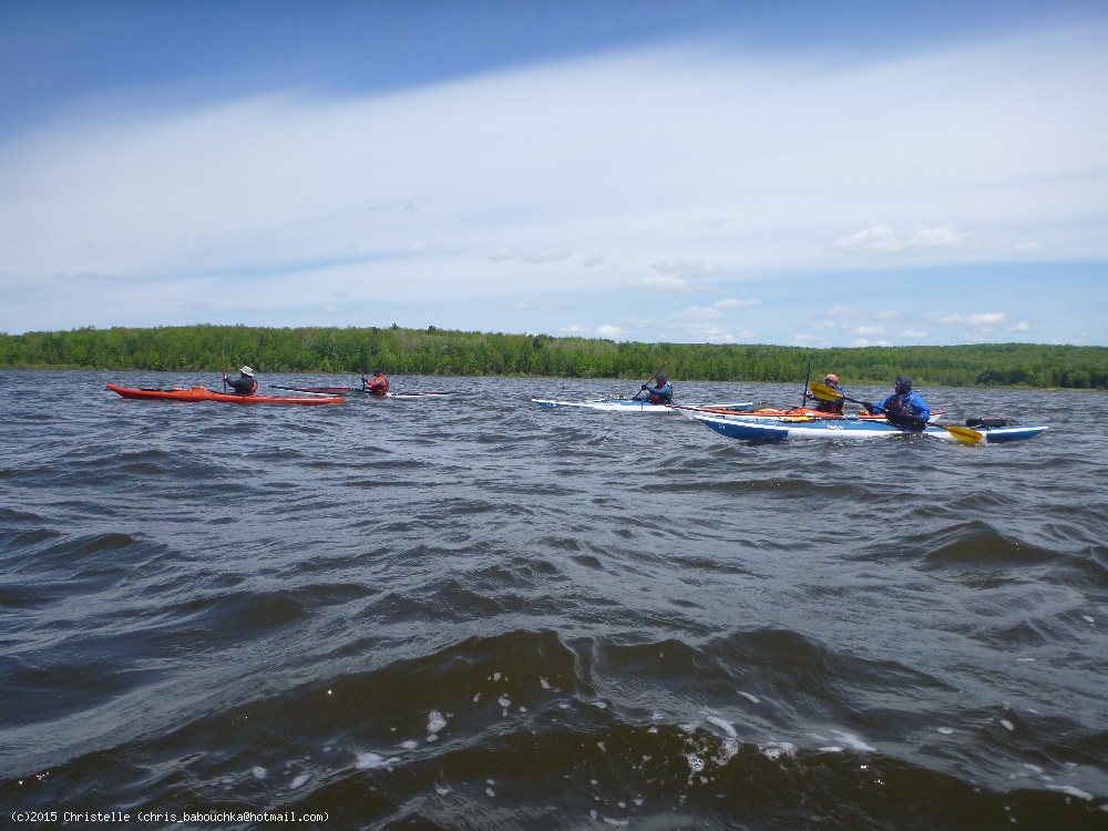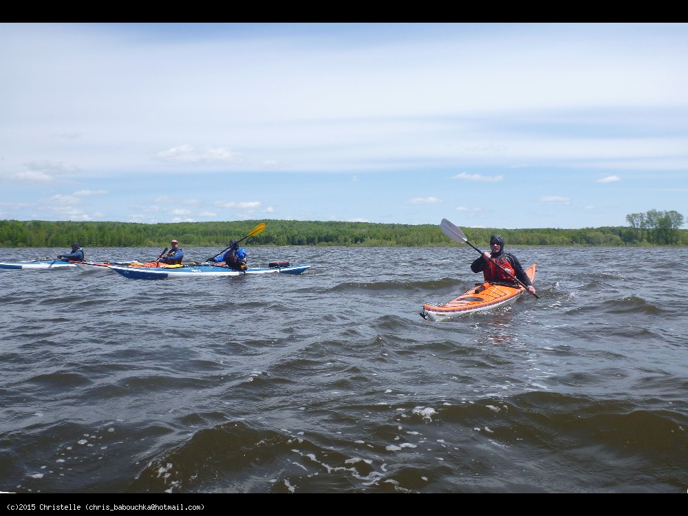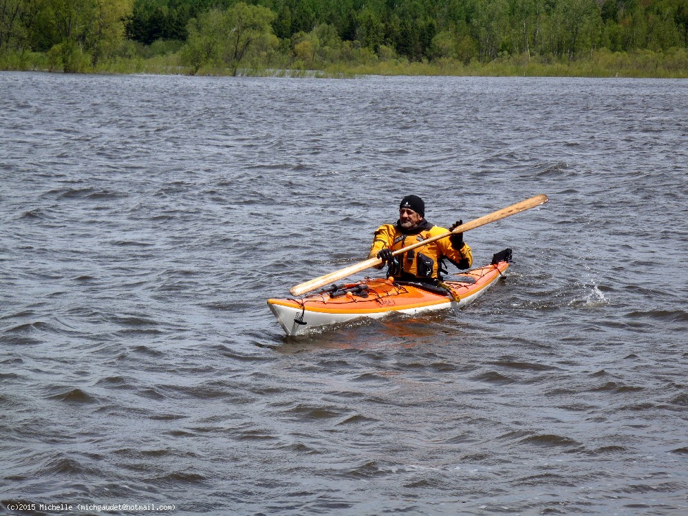Le plaisir de voir quelqu'un qui commence, revenir d'une rando avec du vent, de l'eau qui bouge et la vague 3/4 arrière avec satisfaction de sa journée, c'est toujours le fun à voir. J'ai l'impression que le germe de la kayakerie est semé, pour l'aider à prendre, donne lui de l'eau en masse!