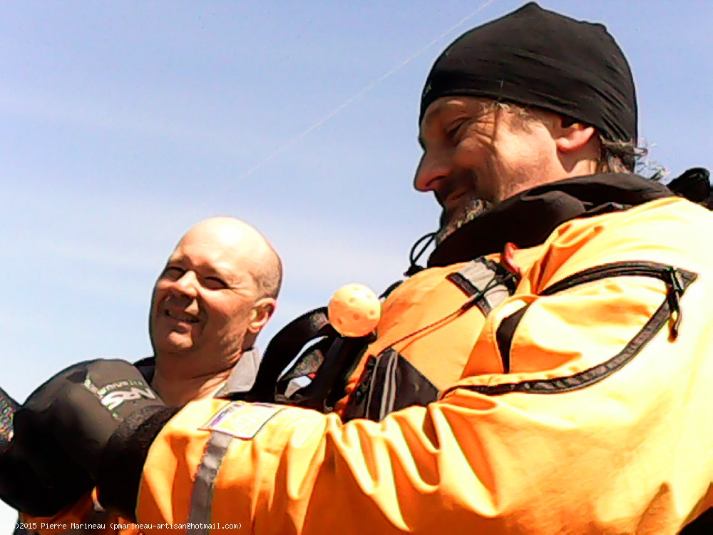 Un gros GROS merci a tous!!!!! Quelle belle expérience (et baptême!). J'ai dormi comme un bébé en soirée.... Je ne veux pas tous vous nommer de peur d'en oublier mais merci pour votre aide (attacher le kayak...rentrer dans mon kayak après mon ''seul!'' bouillon de la journée, le prêt de l'équipement (cagoule,chandail manche longue...), l'extra saucisson, biscuit, les nombreux conseils...). Ce fut une journée mémorable pour moi pour votre gentillesse et ouverture... Vous êtes une belle gang!!!![]() Patrick (Orion) | |||||||||||||||