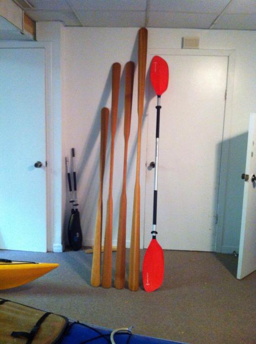 Il faut aussi ne pas oublier le contexte des choses et leur raisons d'être. La groenlandaise qu'on reproduit pour notre utilisation actuelle n'est pas aussi fonctionnelle qu'a l'origine. Elle n'est originale dans sa conception que si on l'utilise avec un skin on frame. Avec nos gros kayaks en fibre ou en plastique, plus larges, plus haut de pont, et plus lourd, la pagaie et ses proportions d'origine ne sont pas aussi efficace comme sur une embarcation légère, étroite et basse de SOF. Donc je fais une adaptation pour mes conditions actuelles. D'ailleur j'ai fais cette pagaie pour mon Saguenay qui est un gros cargo, je pense qu'elle sera trop grandes pour le Riot. C'est un premier essaie, on verra ce que ça donnera à nos prochaines sorties. | |||||||||||||||