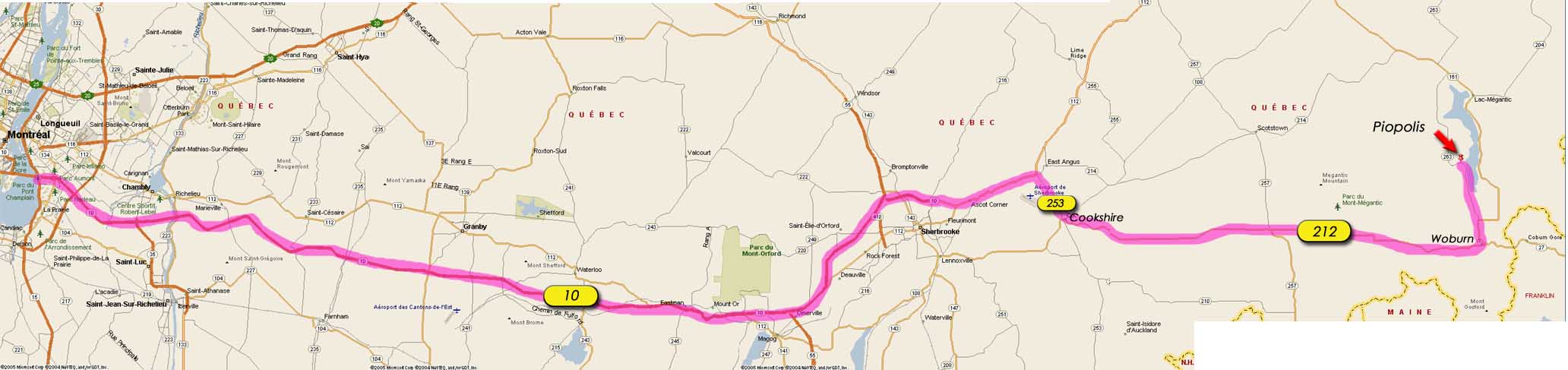 Lac Mégantic Carte dynamique Tracé suggéré pour s'y rendre à partir de Montréal/Sherbrooke