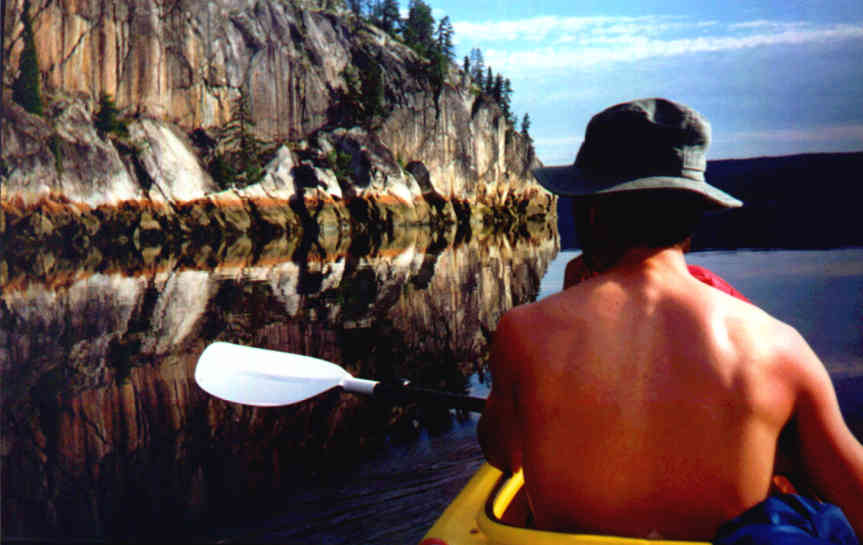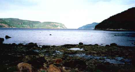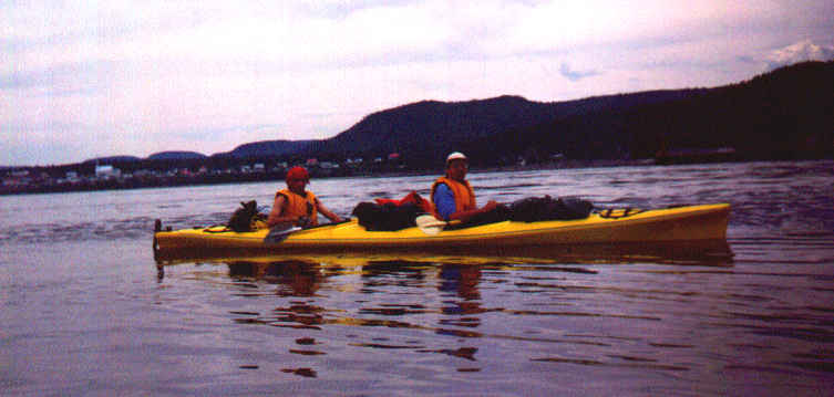 Le dernier départ. En fait, il ne reste plus qu'à pagayer vers le Saint-Laurent en admirant la beauté du Fjord. On connaîtra aujourd'hui une nouvelle condition: le vent de face.
